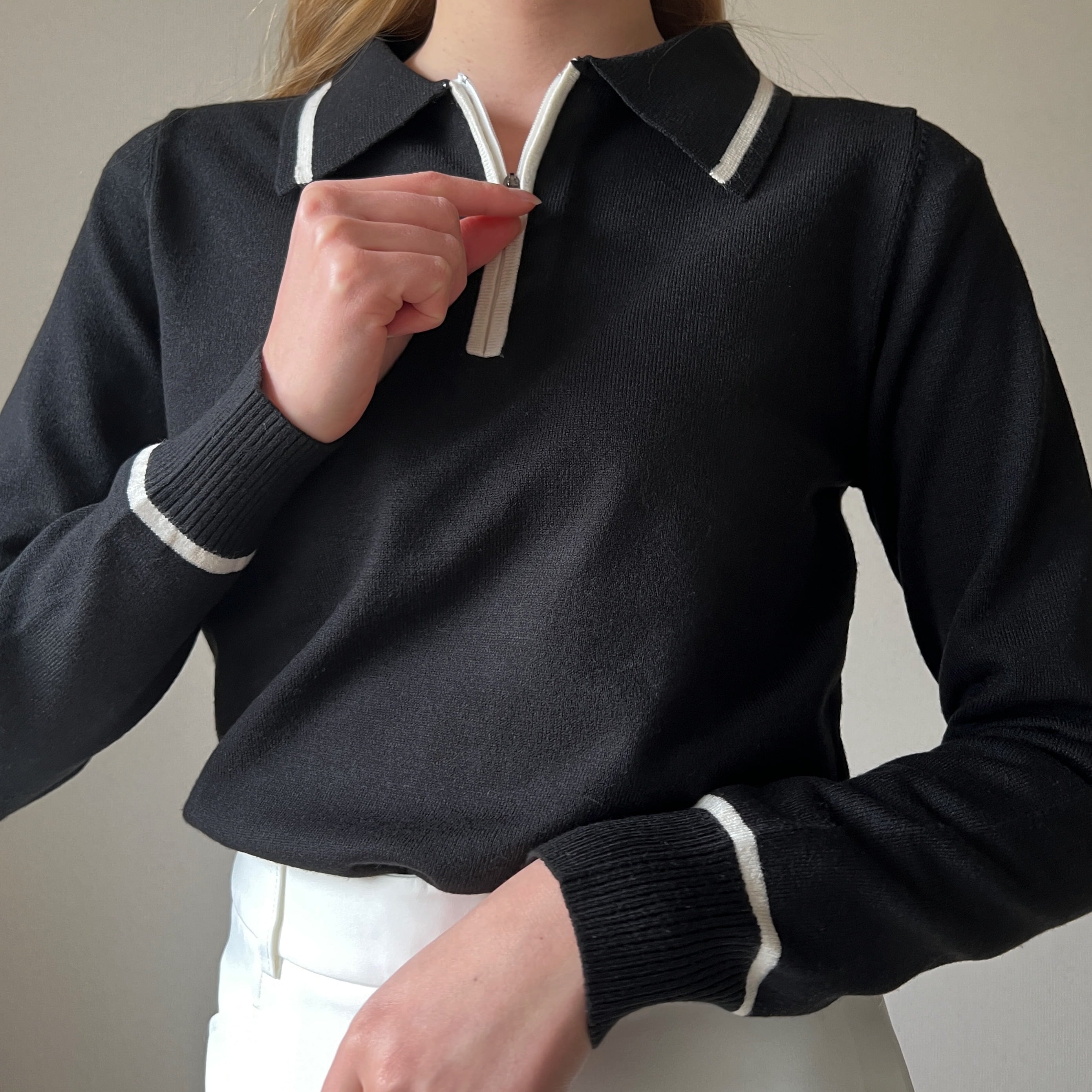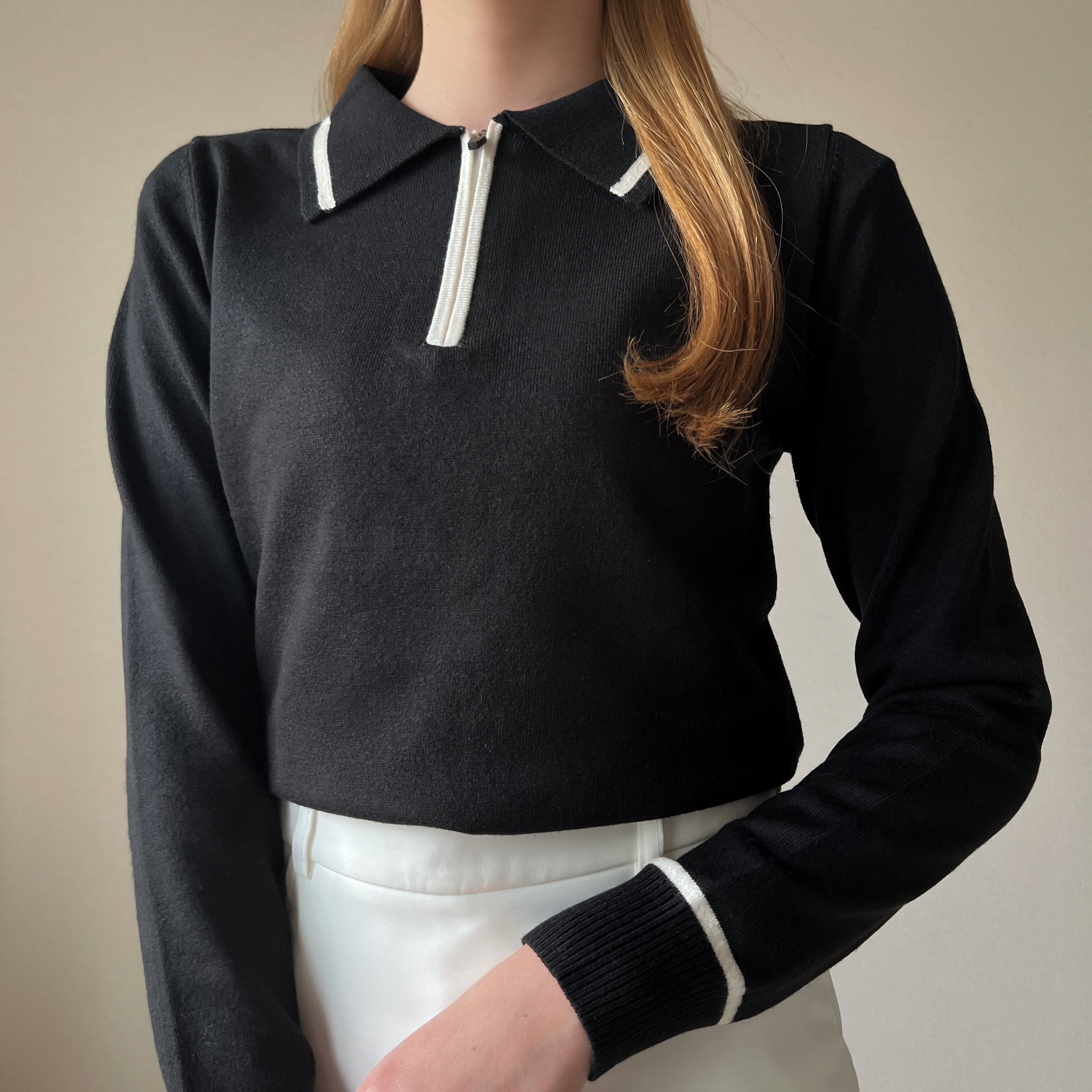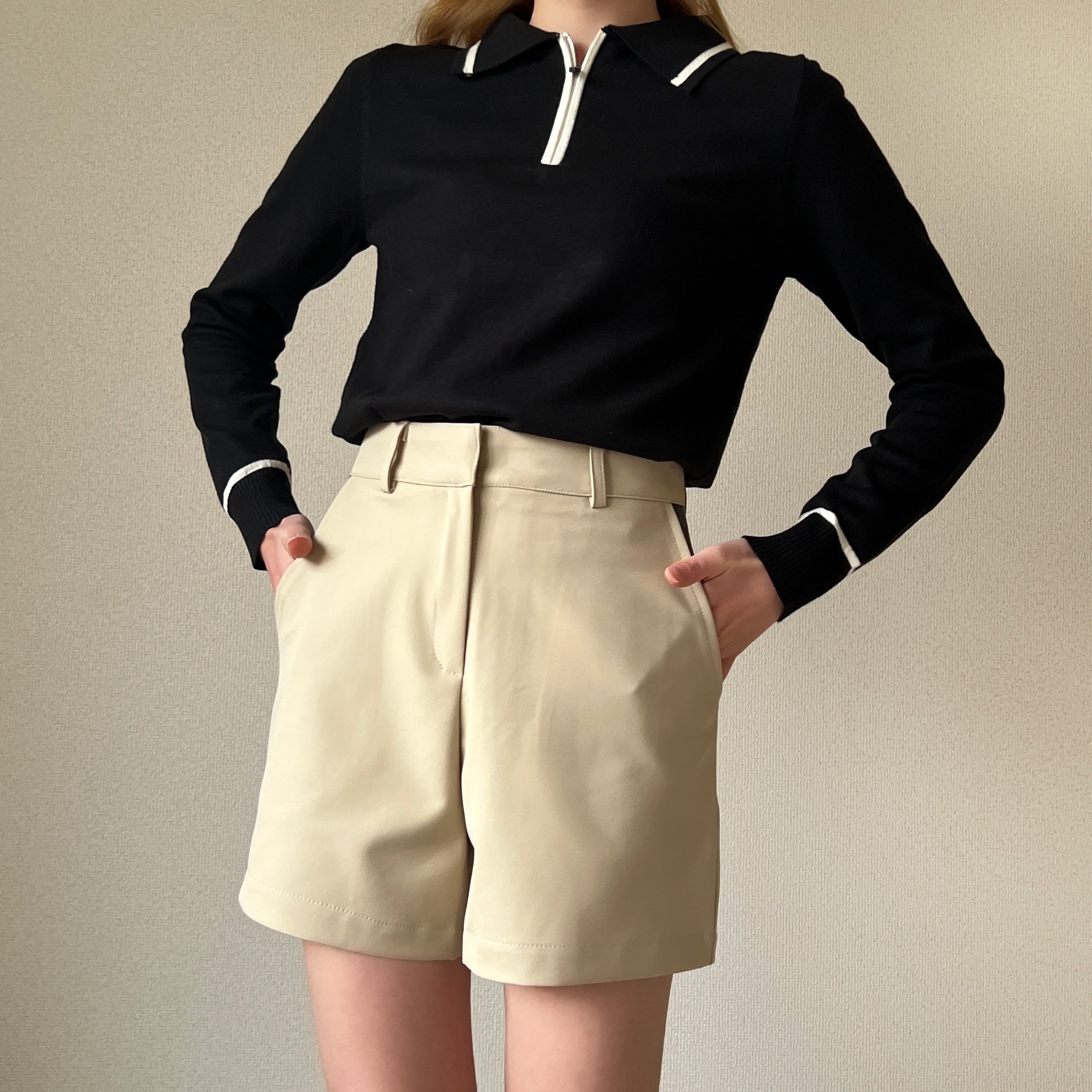 ベーシックな襟付きニットで悩むことなくコーデ可能なアイテム:)