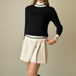 シンプルでどんなボトムスとも合わせやすいモックネックリブニットです。